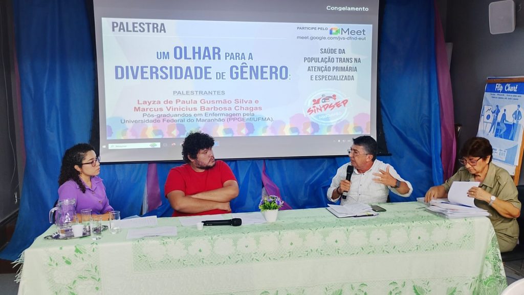 O Sindsep/MA promoveu na manhã de hoje palestra e discussão com o tema “Um olhar para a diversidade de gênero: Saúde da população TRANS na atenção primária e especializada”. Os temas foram apresentados pelos pós-graduandos em enfermagem pela Universidade Federal do Maranhão (PPGEnf/ UFMA), Marcus Vinicius Chagas e Layza de Paula G. Silva.